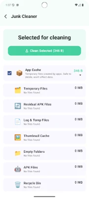 Our Junk Cleaner module performs a deep scan of your device's storage to identify and remove unnecessary files. This includes: