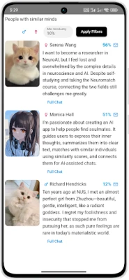 Chat with our AI (Serena) who tries to understand you and recommend similar minds to you