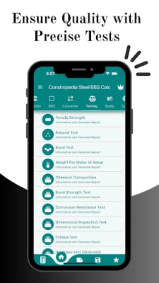 BBS Shapes Codes & Testing: Stay compliant with industry standards by using our BBS shapes codes and tensile strength testing features. These tools help you ensure the quality and safety of your constructions.