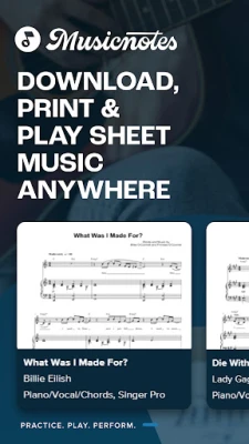 The Musicnotes app lets you play, practice and learn from digital sheet music, create set lists, and take your sheet music and notes anywhere—whether music is your hobby or profession. With instant access to the largest high-quality collection of sheet music and musical notations, Musicnotes empowers musicians and music educators alike to grow their skills with confidence. Take your music studies anywhere and make every session more effective and engaging.