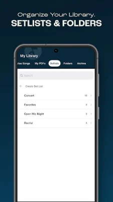 • Organize your music note sheets into set lists for lessons, recitals, or group practice