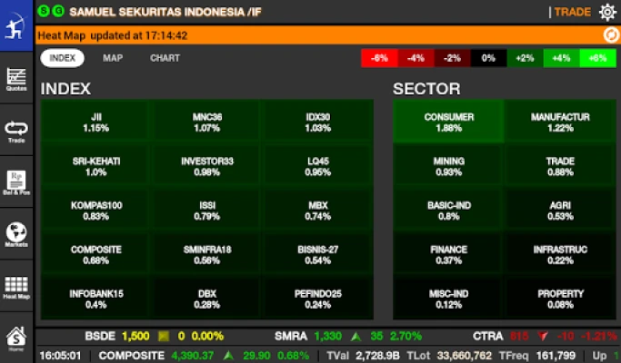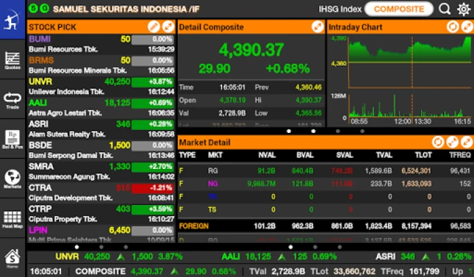 Online stock trading application from Samuel Sekuritas for the Indonesia Stock Exchange.