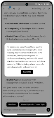 Chat with our AI (Serena) who tries to understand you and recommend similar minds to you